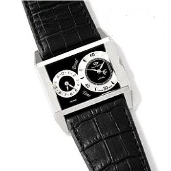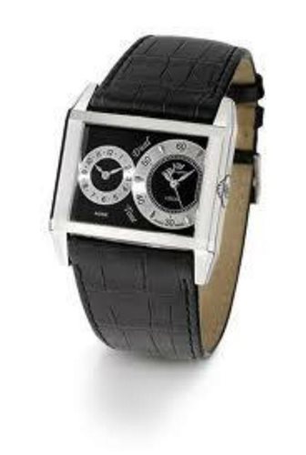 Orologio uomo cassa in acciaio 316L , movimento al quarzo , dual time , cassa rettangolare mm38x28 , quadrante nero , vetro minerale di forma , fondello a pressione , cinturino in pelle stampato nero. Immagine indicativa , la confezione può variare in forma e colore.