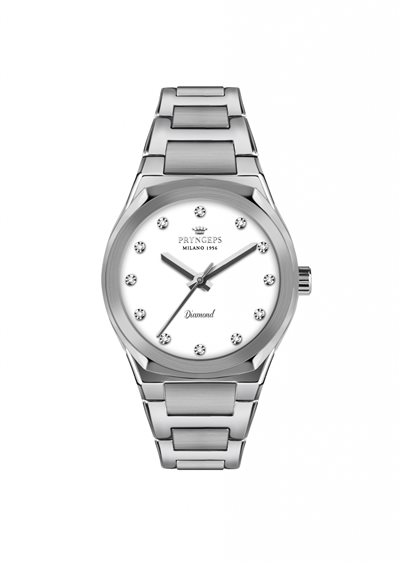 OROLOGIO SOLO TEMPO DA DONNA IN ACCIAIO,QUADRANTE BIANCO CON 12 DIAMANTI