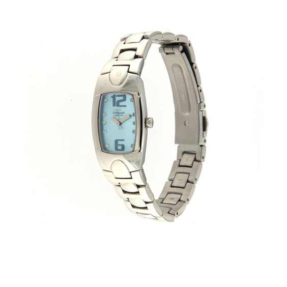 OROLOGIO RETTANGOLARE (17x20) SOLO TEMPO IN ACCIAIO,QUADRANTE AZZURRO CON INCIDI 12 E 6 AZZURRI