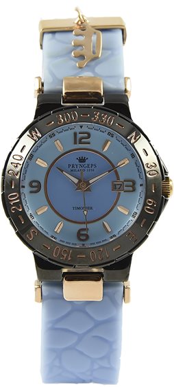 OROLOGIO PRYNGEPS DONNA SOLO TEMPO CON CINTURINO IN SILICONE AZZURRO CON INSERTI IN ROSè