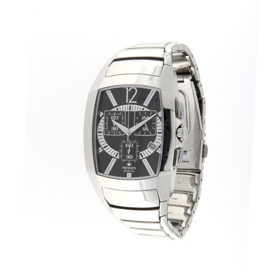 OROLOGIO CRONO DA UOMO IN ACCIAO,QUADRANTE NERO CON TRE CONTATORI,INDICI COLOR ACCIAIO E DATARIO ORE 4