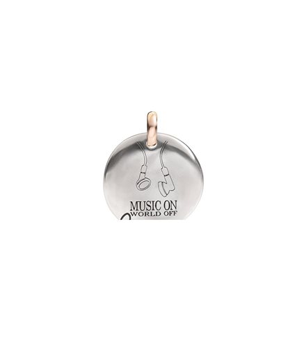 MONETINA QUERIOT IN ARGENTO E ORO ROSA 9K CON SCRITTA 'MUSIC ON WORLD OFF'