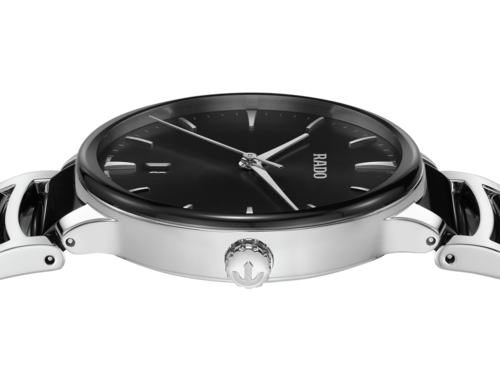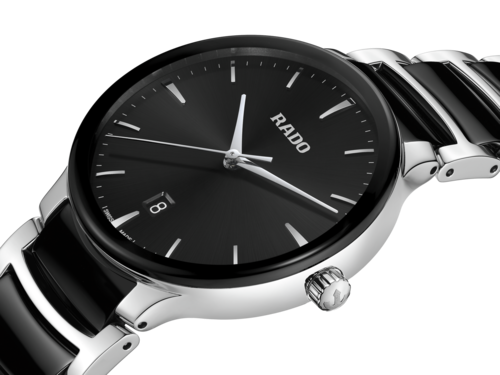 Il classico Centrix Quartz è stato rielaborato non solo tecnicamente, ma anche esteticamente. Il nuovo modello dispone di un cristallo zaffiro arrotondato che si estende fino al bordo e di una cassa ricurva che si integra con l’estremità del cristallo. Le anse della cassa ridisegnate e il bracciale in acciaio lucido con maglie centrali in ceramica high-tech nera completano l’estetica rinnovata di questo iconico segnatempo. Il quadrante nero soleil, con indici applicati color rodio, si abbina perfettamente alle lancette color rodio. Grazie al movimento al quarzo calibro R073 dotato di PreciDrive e HeavyDrive, il segnatempo è dotato di grande precisione e resistenza agli urti. L'orologio è impermeabile fino a 50 m.