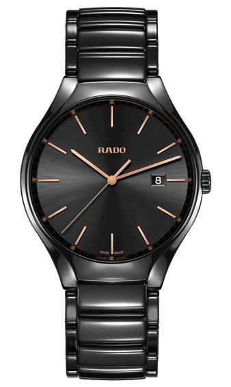 Cassa e bracciale in ceramica high-tech nera. Fixata lunetta in ceramica nera. Quadrante nero con lancette in oro rosa e indici indici. Tipo di quadrante: analogico. Visualizzazione della data nella posizione ore 3. Movimento al quarzo. Vetro zaffiro antigraffio. Tirare / spingere la corona. Fondello solido. Dimensione della cassa: 40 mm. Spessore cassa: 8,9 mm. Forma della cassa rotonda. Larghezza della fascia: 20 mm. Chiusura deployante. Resistente all'acqua a 50 metri / 165 piedi. Funzioni: data, ora, minuti, secondi. Stile orologio da sera.