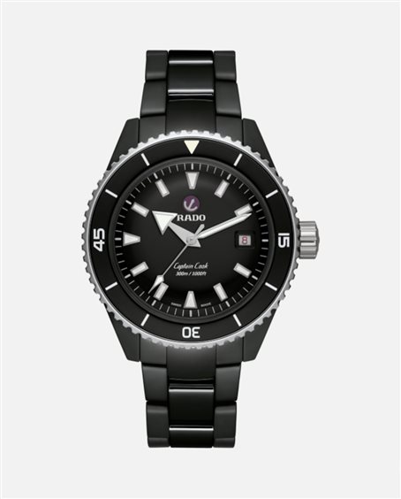 Il Captain Cook High-Tech Ceramic Diver è impermeabile fino a 300m. Le lancette e gli indici di questo orologio subacqueo certificato ISO 6425 sono rivestiti in SuperLuminova® per garantire un’eccellente visibilità sul quadrante lucido laccato nero. La cassa monoblocco da 43mm è realizzata in ceramica hi-tech nera opaca e la lunetta girevole è in acciaio lucido. Al suo interno, il movimento automatico Rado R763 supera i requisiti standard nei test di precisione da 3 a 5 posizioni e offre 80 ore di riserva di carica. Questo esemplare è dotato di un bracciale in ceramica hi-tech nera lucida. Qualunque sia il tuo campo di esplorazione, il Captain Cook High-Tech Ceramic Diver sarà un partner affidabile e solido, al tuo polso per gli anni a venire.