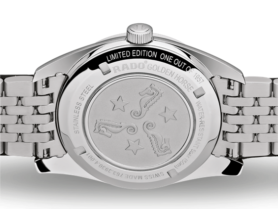 OROLOGIO RADO GOLDEN HORSE EDIZIONE LIMITATA a 1957 esemplari - MOVIMENTO: automatico Swiss Made - RISERVA DI CARICA: 80 ore - CASSA: in acciaio - QUADRANTE: blu - FONDELLO: serrato - Logo Golden Horse inciso - DIAMETRO: 37mm - BRACCIALE: in acciaio - Fibbia deployante - VETRO: minerale zaffiro bombato - Trattamento antiriflessi - FUNZIONI: 3 sfere - IMPERMEABILITA: 5 Atm - GARANZIA UFFICIALE 24 mesi