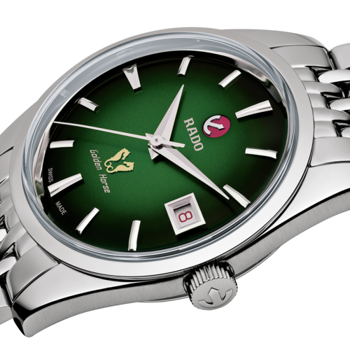 OROLOGIO RADO GOLDEN HORSE EDIZIONE LIMITATA a 1957 esemplari - MOVIMENTO: automatico Swiss Made - RISERVA DI CARICA: 80 ore - CASSA: in acciaio - QUADRANTE: Verde - FONDELLO: serrato - Logo Golden Horse inciso - DIAMETRO: 37mm - BRACCIALE: in acciaio - Fibbia deployante - VETRO: minerale zaffiro bombato - Trattamento antiriflessi - FUNZIONI: 3 sfere - IMPERMEABILITA: 5 Atm - GARANZIA UFFICIALE 24 mesi