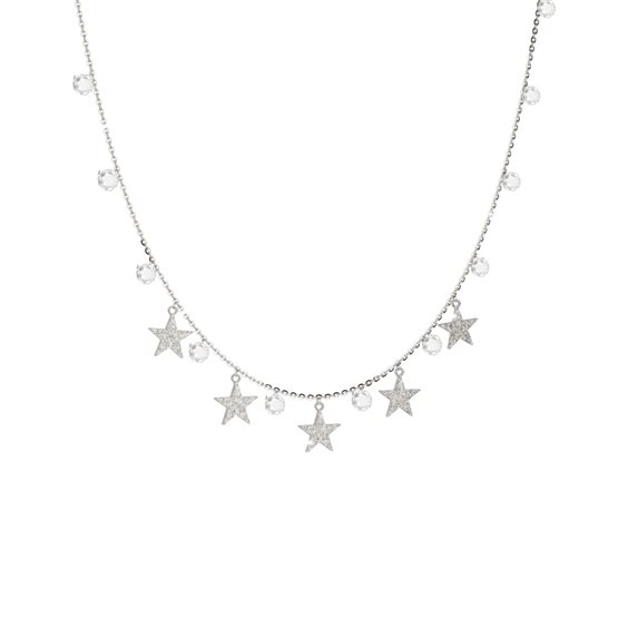 Collana della collezione Lucciole in argento 925/°°° rodiato, con charms in cristallo e stelle.