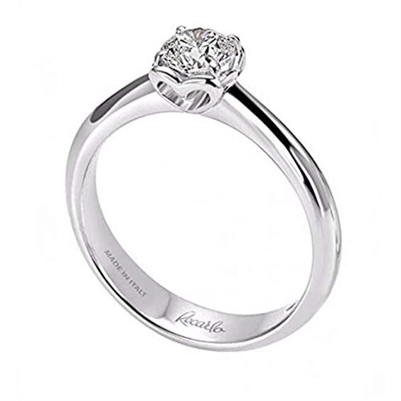 Anello solitario in oro bianco 18kt con diamante ct 0,31, colore F e purezza SI. Peso: 2,76