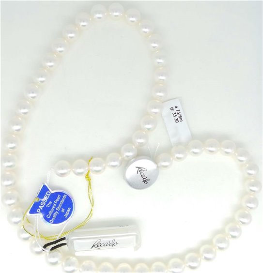 Filo di perle diametro 7,5-8 Provenienza Giappone Perla coltivata Certificato Recarlo
