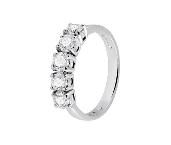 Anello veretta della collezione Josephine in oro bianco con diamanti a taglio rotondo di caratura 0,50 con purezza VS SI.
