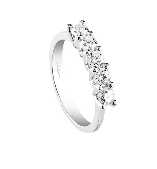 Anello fedina in oro bianco 750/°°° a 5 diamanti kt. complessivi 1,00 colore G purezza SI
