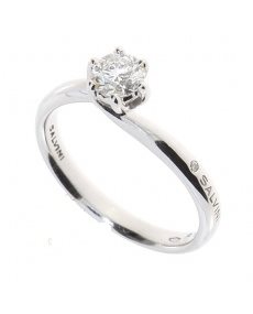 Solitario con diamanti naturali taglio brillante da 0,22 carati, montatura con castone a 6 griffe. Linea Lavinia in oro bianco 18kt.