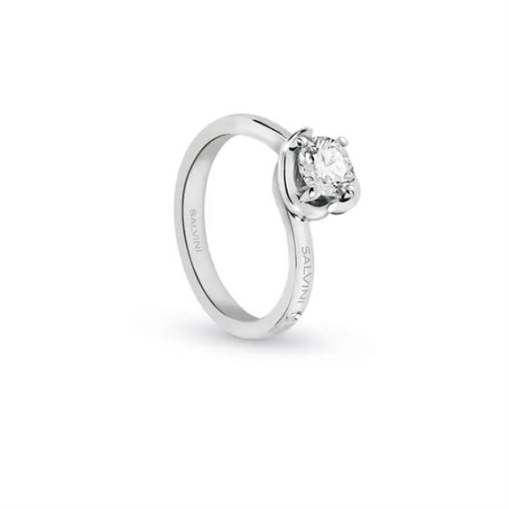 Anello solitario della collezione Abbraccio in oro bianco 18 kt e diamanti taglio brillante di kt. 0.35, G color SI. Il gioiello è accompagnato da una assicurazione gratuita contro lo scippo e la rapina e da un certificato dell'istituto gemmologico che ne attesta le caratteristiche.