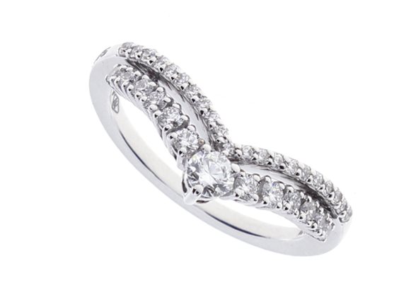 Anello a V della collezione Venere in oro bianco con diamanti a taglio rotondo di caratura 0,54 di colore GH.