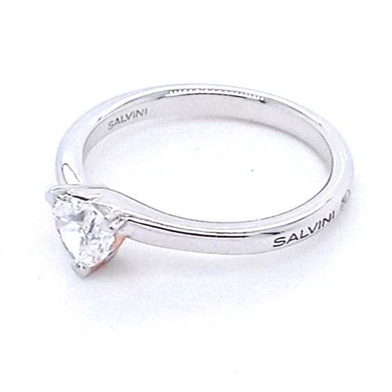 Anello solitario della collezione Battito cuore plain in bianco con diamante taglio a cuore di caratura 0,50. Ente certificato: GIA.
