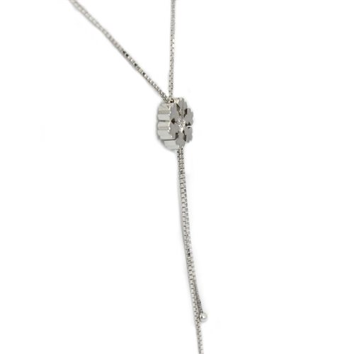 Collana donna in oro bianco 18 kt Scendipetto a forma di FIOCCO di NEVE con diamante taglio brillante kt 0,01H Lunghezza catena cm 60 regolabile con metodo sali scendi Misura pendente mm 10x10 Chiusura a moschettone con diamante