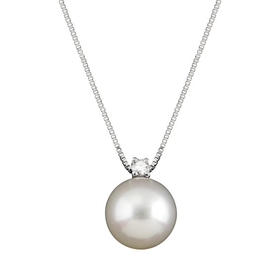 Collana della collezione Le perle salvini in oro bianco con perla bianca di provenienza giapponese di diametro 7,25-7,5 e diamante di caratura 0,04 di colore GH.