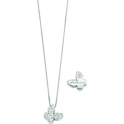 Collana della collezione I segni in oro bianco con pendente a forma di farfalla con diamanti a taglio rotondo di caratura 0,07, colore GH.