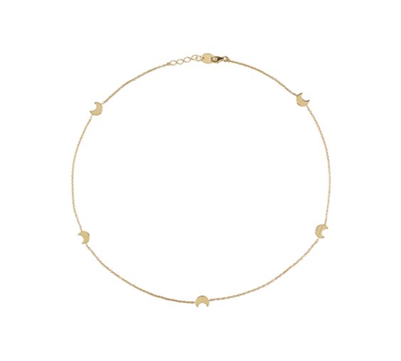 Collana con lune della collezione I segni in oro giallo 9kt con diamante a taglio rotondo di caratura 0,01 di colore GH.