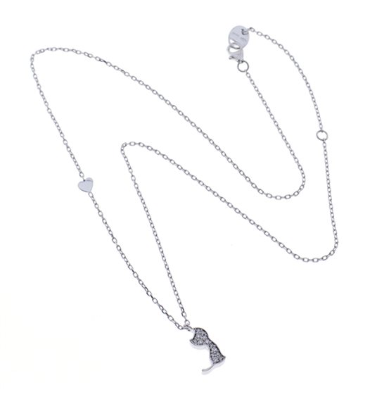 Collana della collezione BE happy con pendente un gattino in oro bianco 9kt e diamanti a taglio rotondo di caratura 0,08 di colore GH.