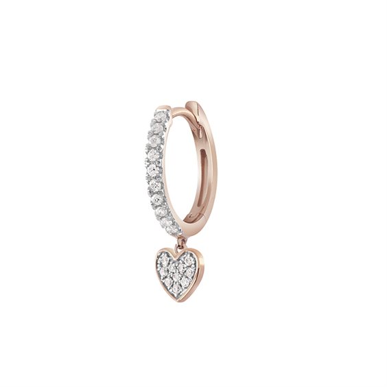 MONO ORECCHINO SALVINI IN ORO ROSA KT 18 CON BRILLANTI KT 0.10 GH. CERCHIO CON PENDETE CUORE.