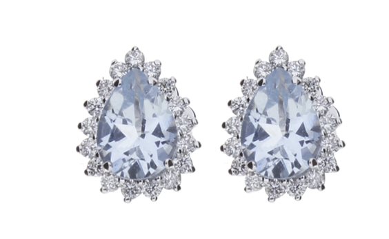 Orecchìni in oro bianco con acquamarina e diamanti (0.27ct colore GH).