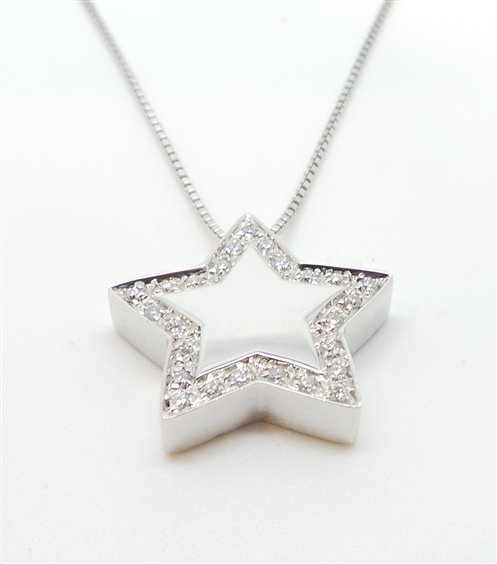 Collana Salvini in oro bianco con pendente stella, diamanti 0.20 ct