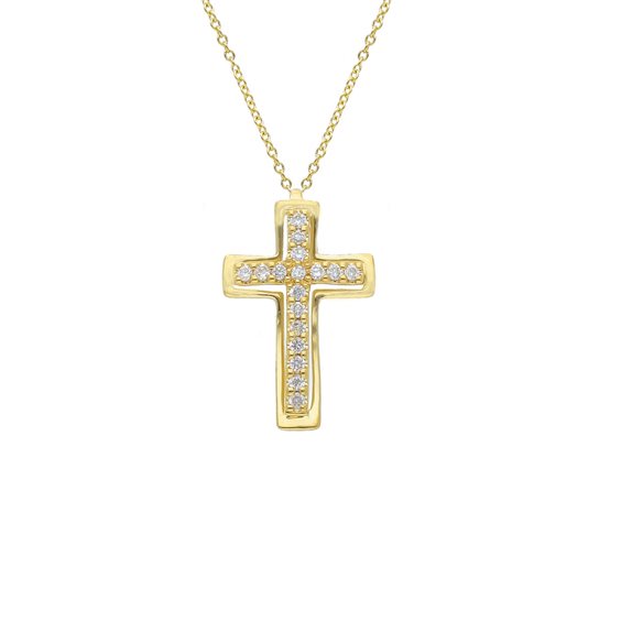 Collana con croce in oro giallo con diamanti di caratura 0.05 di colore G/H e purezza SI.