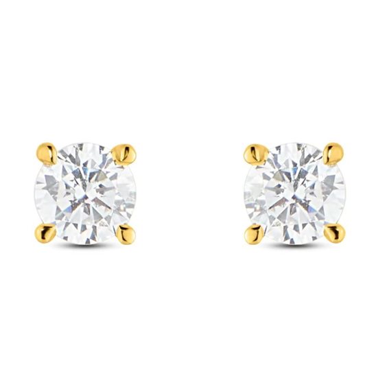 Orecchini a lobo Oro giallo 375/1000 Cubic zirconia Bianco 4 griffe