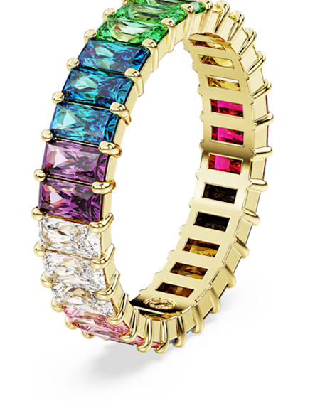 Caratterizzato da una vivace gamma di colori arcobaleno, questo anello Matrix risplende di gioia ed eleganza. La fascia placcata color oro presenta un cerchio completo di cristalli taglio Baguette, ciascuno raffinatamente montata a griffe. Pensato per permetterti di esprimere tutta la tua personalità, questo gioiello si abbina splendidamente ai nostri orecchini coordinati. Articolo nr.: 5686631 Collezione: Matrix Materiale: Placcato color oro, Zirconia Colore: Multicolore