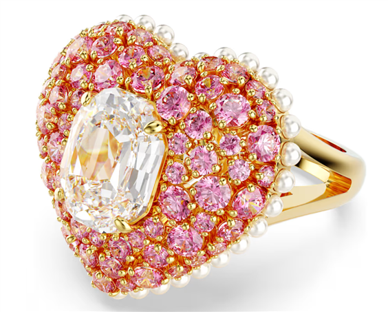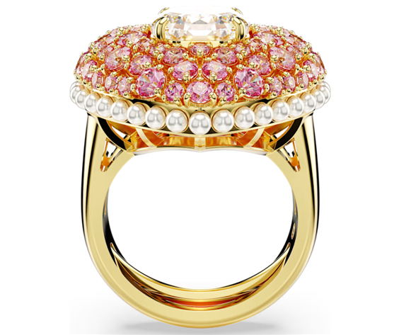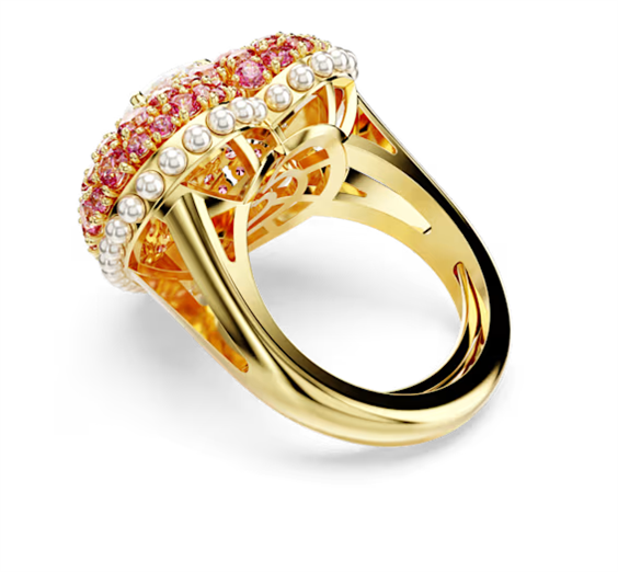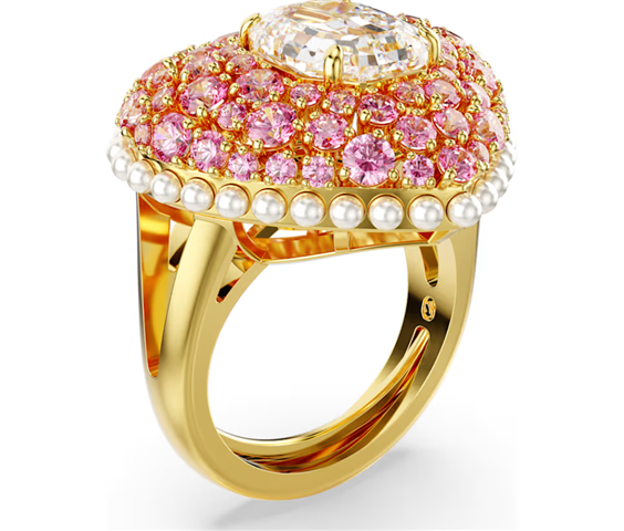 In questo accattivante anello a forma di cuore, colore e maestria artigianale si sposano in completa armonia. Il gioiello placcato color oro è impreziosito da Swarovski Zirconia rotondi rosa, incastonati utilizzando la brillante tecnica chatonnage. Al centro, una pietra danzante ottagonale cattura la luce da ogni angolazione, mentre i bordi del motivo sono impreziositi da una serie di piccole Crystal Pearls. La scelta perfetta per un’idea regalo incantevole. Articolo nr.: 5690058 Collezione: Hyperbola Misura regolabile dalla 50 alla 55 Materiale: Cristalli, Placcato color oro, Perla di cristallo, Zirconia Colore: Rosa