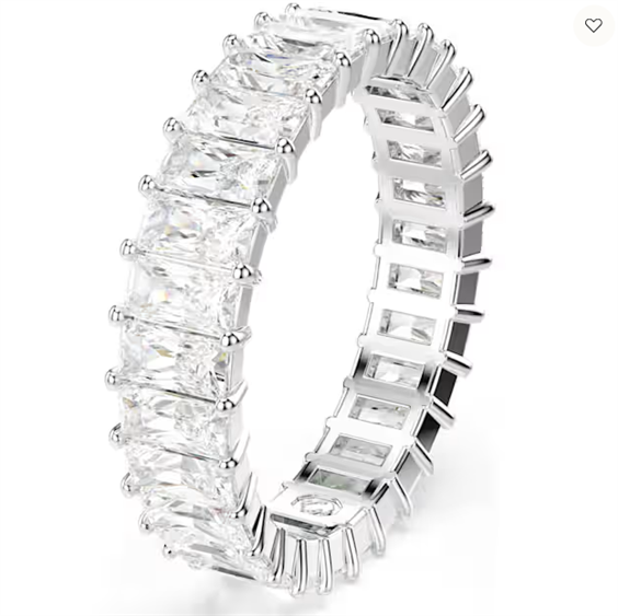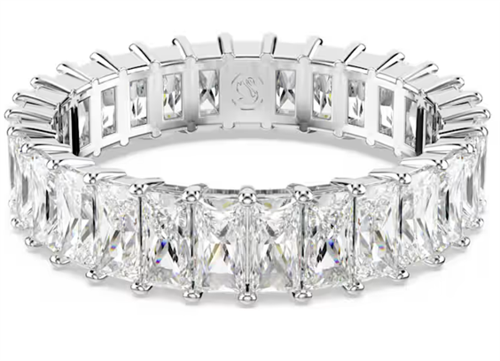 Nessuna collezione di gioielli può dirsi completa senza un radioso anello a fascia. Questo design placcato rodio presenta un’intera corona di Swarovski Zirconia dal taglio Baguette, ciascuna posizionata in una raffinata montatura a griffe. Una creazione sensazionale, da indossare da sola o sovrapposta ad altri anelli altrettanto frizzanti della famiglia Matrix. Articolo nr.: 5693410 Collezione: Matrix Materiale: Placcatura rodio, Zirconia Colore: Bianco