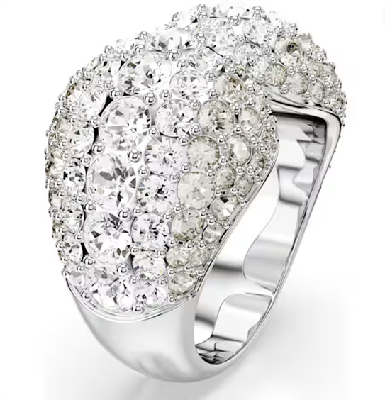 Aggiungi un toco di glamour in più al tuo styling con questo splendido anello cocktail Sublima. L’esclusivo design a pavé è placcato rodio e presenta una base in metallo bombata che crea un eccezionale volume. Il motivo Meteora di cristalli di dimensioni diverse rafforza l’effetto ipnotico. Abbina questa audace creazione ad orecchini Sublima coordinati per un look mozzafiato.