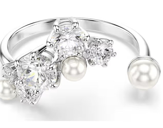 Tieni le stelle tra le mani con questo scintillante anello Constella. Il design aperto è placcato rodio e impreziosito da una spolverata di Swarovski Zirconia rotonde e Crystal Pearls Swarovski di diverse e accattivanti dimensioni. Una creazione che trasporterà il tuo stile nel cielo notturno e ti donerà un bagliore cosmico ad ogni occasione. Articolo nr.: 5705596 Collezione: Constella Materiale: Cristalli, Placcatura rodio, Perla di cristallo, Zirconia Colore: Bianco