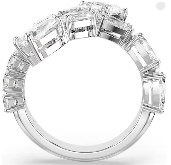 La raffinatezza risplende luminosa in questo straordinario anello Matrix. Il design placcato rodio è impreziosito da una serie di Swarovski Zirconia trasparenti con tagli Pear e Squaredi varie misure per una silhouette inaspettata. Indossalo insieme a un bracciale rigido Matrix coordinato e amplifica la tua luce interiore.