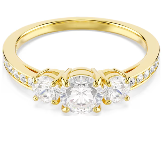 Pensata per ogni occasione, la famiglia Stilla evoca pura eleganza. Questo classico anello porta la radiosità ad un livello superiore grazie ai cristalli Cry lungo la fascia e ad un trio di Swarovski Zirconia dal taglio di precisione su una brillante finitura in tonalità oro. Uno splendido gioiello da indossare tutti i giorni, facile da abbinare ad altre creazioni della stessa famiglia. Articolo nr.: 5723291 Collezione: Stilla Attract Materiale: Cristalli, Placcato color oro, Zirconia Colore: Bianco