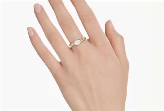 Questo originale anello midi Dextera è perfetto da sovrapporre o da indossare insieme ad un bangle coordinato. La fascia placcata in tonalità oro presenta cristalli rotondi di varie dimensioni, sapientemente incastonati in una formazione ottagonale utilizzando la tecnica Rodio flash di Swarovski. Indossalo come anello di riferimento per un’eleganza da tutti i giorni.