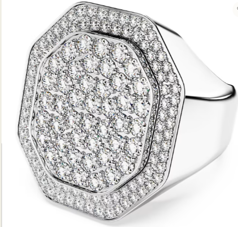 Questo anello cocktail della linea Dextera è perfetto per un look di massimo impatto. Placcato rodio e sorprendentemente luminoso, questo gioiello presenta una sfavillante forma ottagonale completamente impreziosita da pavé e circondata da una cornice di pietre più piccole. Costruisci il tuo look attorno a questo gioiello di grande stile. Articolo nr.: 5651383 Collezione: Dextera Colore: Bianco Materiale: Cristalli, Placcatura rodio