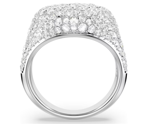 Questo scintillante anello a motivo farà risplendere ogni outfit con la sua costellazione di cristalli. La fascia placcata rodio presenta un’audace cupola impreziosita da un pavé a neve di cristalli Cry rotondi di diverse dimensioni. L’effetto cluster è ipnotico e vivace – ne risulta un anello dallo stile incantevole che si impone. Articolo nr.: 5684245 Collezione: Meteora Materiale: Cristalli, Placcatura rodio Colore: Bianco