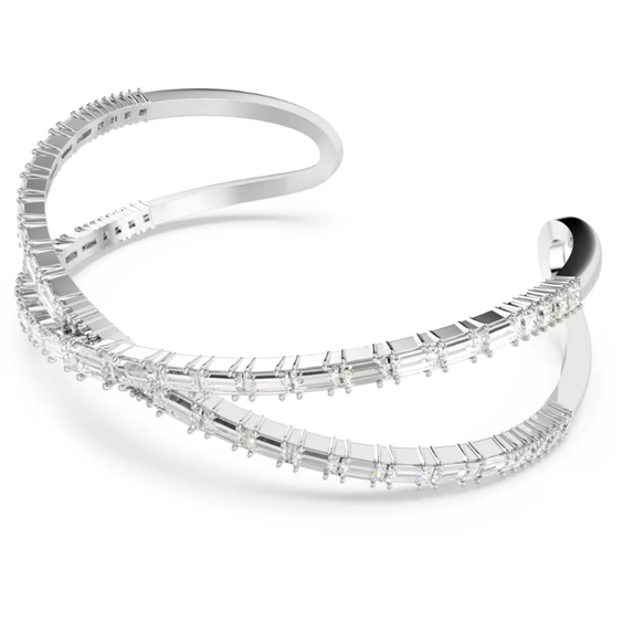 Abbraccia la natura illimitata del tempo con questo sorprendente polsino Hyperbola. I gioielli rodiati si ispirano al motivo dell'infinito e si avvolgono attorno al polso con una serie di cristalli Swarovski Zirconia, sapientemente incastonati per creare incredibili dettagli. Un modo perfetto per esprimere sia il lato stravagante che quello aggraziato del tuo stile. Articolo n.: 5677627 Collezione: Hyperbola Lunghezza x larghezza: 17 x 1,8 cm Diametri interni: 6,1 x 4,6 cm Distanza di apertura: 3,3 cm Materiale: placcato rodio, zirconio Colore: bianco