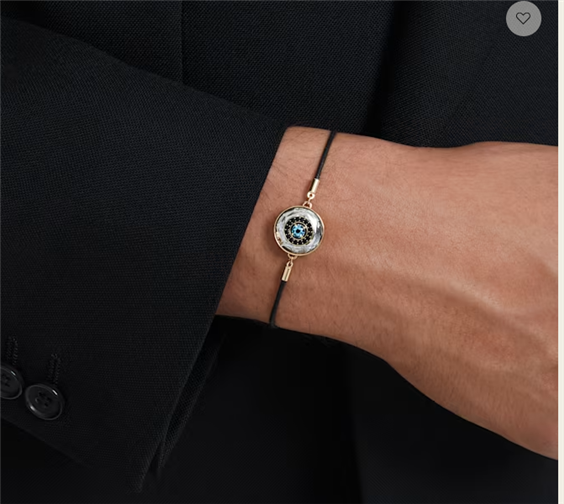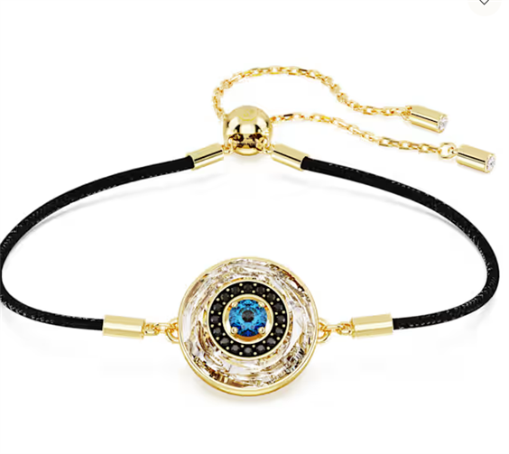 Questo bracciale Symbolica emana un’energia positiva. Indossato su un cordino nero con chiusura scorrevole, il gioiello color oro è una pregevole dimostrazione della creatività di Swarovski. Il motivo dell’Occhio di Allah è realizzato a partire da un anello esterno sfaccettato, pavé nero e una pietra centrale in blu. Una creazione luminosa, al contempo significativa e affascinante. Articolo nr.: 5692167 Collezione: Symbolica Lunghezza (minima - massima): 14.5 - 24 cm Dimensione decorazione: 1.5 x 1.9 cm Materiale: Cristalli, Placcato color oro, Corda di cotone, Zirconia Colore: Multicolore Tipo di fermaglio: Sfera scorrevole