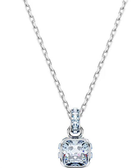 Questo delicato pendente si ispira alla pietra portafortuna del mese di marzo. Appeso a una sottile catena con maglie scintillanti di cristalli, questo gioiello placcato rodio è caratterizzato da un’unica pietra dal taglio Square blu aquamarine che rappresenta serenità e pace. Questo design pieno di significato sarà un magico regalo di compleanno o potrà essere indossato per festeggiare una data per te importante. Articolo nr.: 5651794 Collezione: Birthstone Lunghezza (minima - massima): 42 - 47 cm Dimensione decorazione: 1.1 x 0.8 cm Materiale: Cristalli, Placcatura rodio, Zirconia Colore: Blu Tipo di fermaglio: Anello a molla