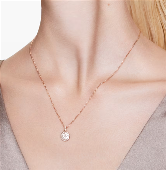 Questo pendente ispirato alle galassie conferirà un brillante impatto ad ogni stile. Il design placcato color oro rosa si indossa su una delicata catenina con chiusura con gancio a moschettone e presenta un motivo a cupola a forma di meteora, splendidamente impreziosito da un pavé a neve di cristalli Cry rotondi di diverse dimensioni. Indossalo come meraviglioso accessorio capace di sprigionare una luminosa gioia. Articolo nr.: 5683450 Collezione: Sublima Lunghezza (minima - massima): 40 - 47 cm Dimensione decorazione: 1.5 x 1 cm Materiale: Cristalli, Placcato color oro rosa Colore: Bianco Tipo di fermaglio: Moschettone