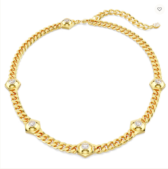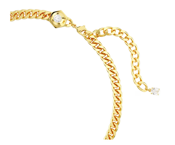 Per un’audace aggiunta al tuo look, questa collana Numina combina un radioso glamour con il lato ingegneristico del metallo. Il gioiello placcato color oro presenta una massiccia catena a maglie, impreziosita da Swarovski Zirconia trasparenti rotonde fissate in una montatura a castone esagonale. Una Swarovski Zirconia aggiuntiva è inoltre inserita sul prolungamento. Opta per questo accessorio dallo stile industriale se hai voglia di qualcosa di eccezionale. Articolo nr.: 5689424 Collezione: Numina Lunghezza (minima - massima): 42 - 52 cm Ampiezza: 1.3 cm Materiale: Placcato color oro, Zirconia Colore: Bianco Tipo di fermaglio: Moschettone