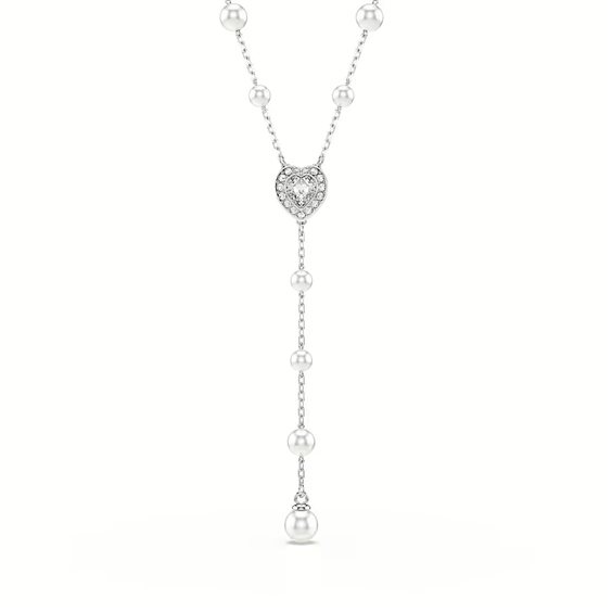 Collana da donna di Swarovski della collezione Ariana Grande x Swarovski. Realizzata con finezza e un’intramontabile bellezza, questa collana a T è emblematica della “Joyful Extravagance” di Swarovski. Il design placcato rodio presenta una delicata catena impreziosita da Crystal Pearls Swarovski. Un motivo a forma di cuore è posto al centro ed è circondato da un brillante pavé, mentre il filo pendente dona un tocco finale di sofisticatezza. Abbina questa collana ad altri gioielli coordinati per creare le tue personali combinazioni radiose. Lunghezza (minima - massima): 38 - 48 cm Dimensione decorazione: 1 x 1 cm. Immagini a scopo illustrativo.