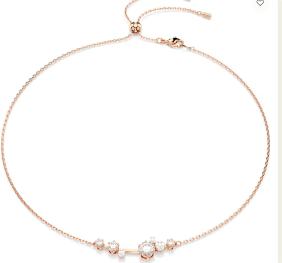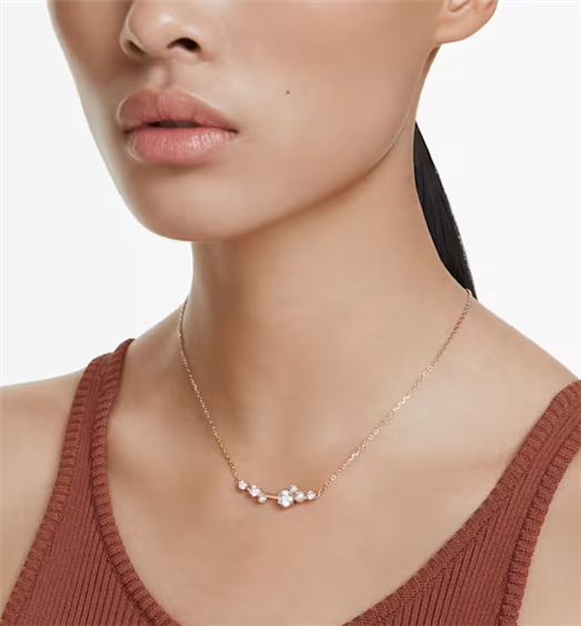 Proietta il tuo stile verso le stelle con questa versatile creazione Constella. Il design placcato in tonalità oro rosa presenta uno speciale meccanismo a scorrimento, che ti permette di indossare il gioiello come collana o girocollo. Sul davanti, le Swarovski Zirconia e Crystal Pearls Swarovski di diverse dimensioni sembrano quasi fluttuare tra le discrete articolazioni, per un look meraviglioso, dal gusto cosmico. Gioca con le differenti possibilità di styling e indossalo insieme a un anello abbinato per un’infinità di riflessi di luce. Articolo nr.: 5729504 Collezione: Constella Lunghezza (minima - massima): 38 - 48 cm Dimensione decorazione: 0.9 x 4.4 cm Materiale: Cristalli, Perla di cristallo, Placcato color oro rosa, Zirconia Colore: Bianco Tipo di fermaglio: Sfera scorrevole