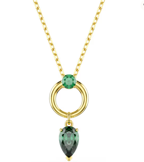 Questo pendente Mesmera fonde il colore con la raffinatezza per creare un affascinante gioiello da indossare tutti i giorni. Il luccicante motivo presenta una Swarovski Zirconia taglio Pear verde, fissata a un lussuoso cerchio placcato in tonalità oro. Al centro è collocata un’ulteriore Swarovski Zirconia taglio Round, mentre un meccanismo scorrevole sulla catena consente di regolare facilmente il pendente alla lunghezza desiderata. Articolo nr.: 5732484 Collezione: Mesmera Lunghezza (minima - massima): 38 - 45 cm Dimensione decorazione: 2.2 x 1 cm Materiale: Cristalli, Placcato color oro, Zirconia Colore: Verde Tipo di fermaglio: Sfera scorrevole