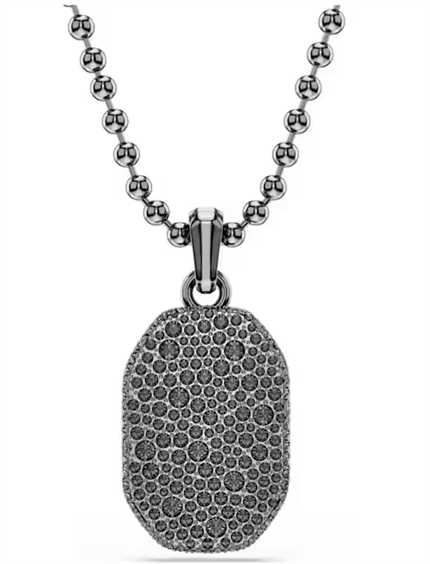 Questo audace pendente è realizzato nell’emblematica forma ottagonale di Dextera e offre un modo alternativo per lo styling di qualsiasi outfit. Sospeso a una catena a sfere con placcatura rutenio, il motivo centrale è interamente decorato con cristalli neri di varie dimensioni e include un’ulteriore striscia di cristalli sul retro. Completa il look elegante abbinando questo pendente a un bangle o a un anello con castone coordinati. Immagini a scopo illustrativo.