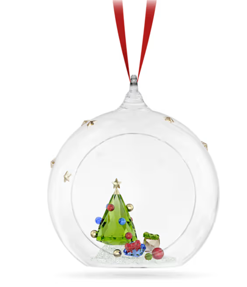 Questa incantevole decorazione, che raffigura una deliziosa scenetta festiva, saprà sicuramente accendere la scintilla dei tuoi ricordi d’infanzia. La pallina è sospesa su un nastro gros-grain rosso e racchiude diversi pacchetti natalizi disposti accanto ad un radioso albero verde. Realizzata ad arte con 412 sfaccettature in vari colori, sfoggia anche dettagli in metallo in tonalità oro. Esponila in un punto di particolare rilievo per conferire al tuo ambiente un tocco della tradizionale allegria delle feste. Oggetto decorativo. Non è un giocattolo. Non adatto ai bambini di età inferiore a 15 anni. Articolo nr.: 5681633 Dimensione: 8.9 x 6.8 x 8 cm Designer: Adi Stocker Materiale: Cristalli, Poliestere, Metallo finitura tono dorato champagne, Vetro Colore: Verde Collezione: Holiday Cheers